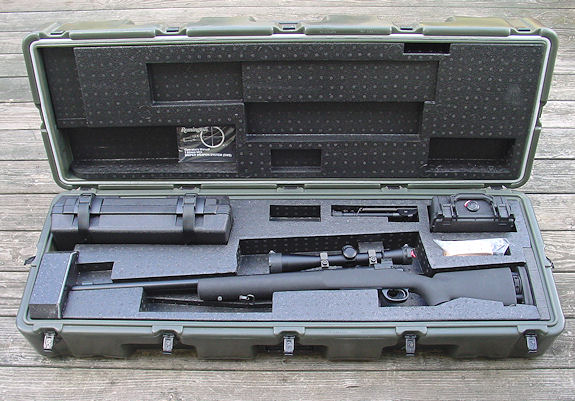 barreled action without loss in zero (within ½ minute of angle). The M24 features a Rem®-Tough powder coated 24" Remington stainless steel hammer forged barrel with unique 5-R rifling to ensure repeated high performance over the life of the barrel (The US Army has seen as many as 14,000 rounds fired before significant barrel degradation). The most unique aspect of the M24 is its "system" approach, providing the soldier with everything he needs to immediately conduct combat or training operations. The versatility of this system ensures that it will continue to be a combat resource for many years to come. M24 SWS CHARACTERISTICS Length: 1,092.2mm (43") Barrel: 416R Stainless Steel Twist: 1/285.75mm (1/11.5") Rifling: 5 radial land grooves Barrel Length: 660.4mm (24") Barrel Finish: Powder-coated Rem-Tough Trigger: Adjustable External 1.58 Kg - 3.6kg (3.5 - 7.9 lb) Butt Plate Adjustment: 50.8mm (2") Weight with sling: 5.4 Kg (12.3 lbs.) Weight with scope: 6 Kg (13 lbs.) Weight with sling and scope: 6.3 Kg (13.85 lbs.) Combat weight (full mag): 6.5 Kg (14.25 lbs.) SWS Complete: 24 Kg (64 lbs.) Calibers: 7.62 Nato Operation: Bolt Action Stock: Synthetic Aramid Fiber Effective Range (day scope): 800 meters Effective Range (night scope): 300+ meters Magazine: 5-round, internal OPTICAL SIGHT CHARACTERISTICS Type: Leupold, Ultra M3, 10 Power Adjustments: Tactile Elevation: 25.4mm (1 min.) per click Windage: 12.7mm (1/2 min.) per click Reticle: Range finding mil dot Remove/Install max error: 12.7 (1/2 min.) Focus ring: Tactical knob Dust covers: Included 2 piece Leupold Base/Rings: Included Optical sight carrying case: Included M24 Sniper Weapon System Description: M24 7.62 NATO SWS Complete System includes Rifle, Iron Sight, mounted Leupold Mark IV M3 Scope, Scope and Iron Sight Carrying Case, Deployment Kit complete with tools, spares and cleaning kit, soft guncase and a Hardigg Systems Hard Case |