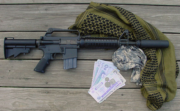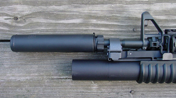 SUREFIRE FA556AR SUPPRESSOR MOUNTED ON COLT M4 CARBINE,